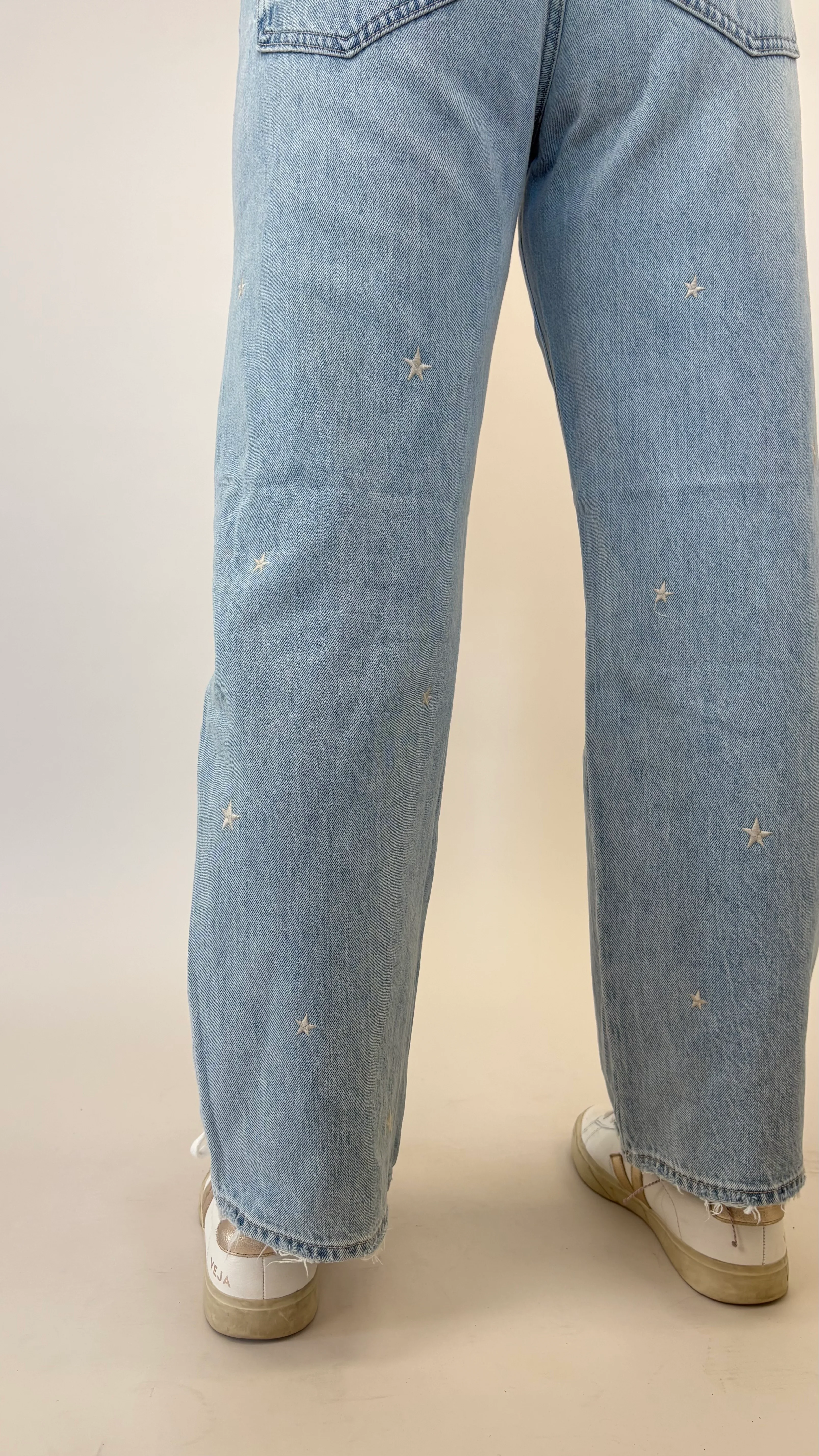 Meet your new statement denim—Lexi features a flattering mid rise and a subtle bowed straight leg, finished with star-embroidered detailing for a touch of playful polish. The 100% cotton feel keeps things structured, crisp, and effortlessly cool.