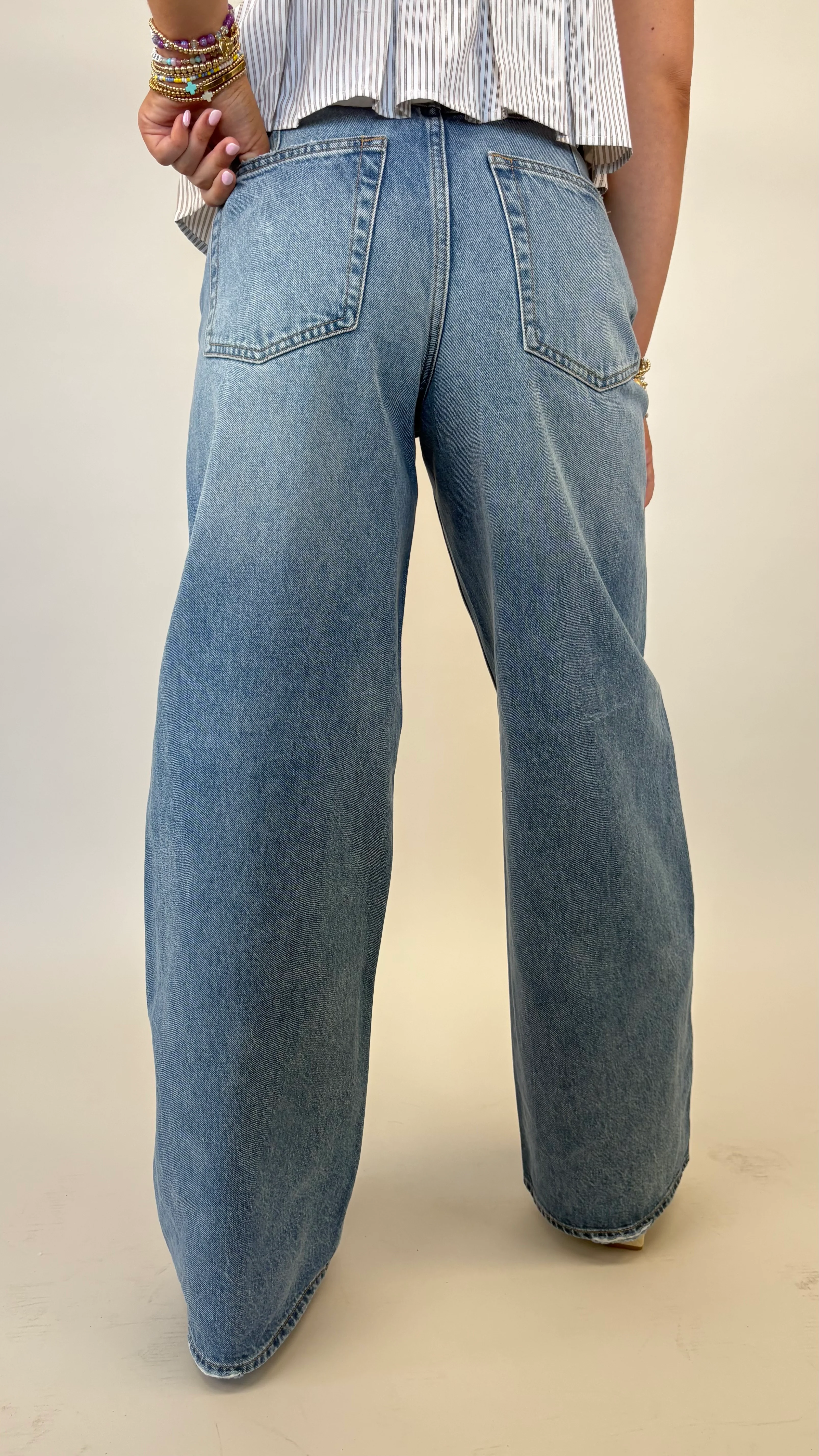 The cool-girl jean you’ve been seeing everywhere. The Sydney features a high-rise waist with a bowed wide-leg silhouette that gives structure without feeling stiff. Finished in the perfect light Hazy wash, these are statement denim that still feel totally wearable.